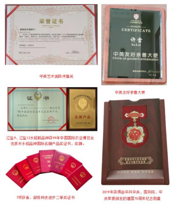他用自己独创的“三法集成育种技术”揭开了前人没有揭开的水稻育种之迷。许雷用这个理论和方法先后主持选育出生产应用的水稻、旱稻、特种稻新品种(系)125个,其中32个水稻、旱稻、香稻新品种经省级审定,9个国家审定。成果中:有1项获国际最高金奖; 1项获世界高端米品鉴大赛优质粳米品牌银奖。2项获优 质米水稻品种国际名牌产品奖;2项获国家优质米水稻 品种金奖,3项获银奖;2项获国家重大科技发明奖;7 项获省、部级科技二等奖; 6项获省政府科技进步三等 奖,2项获省政府重大科技成果转化奖;15项获市(厅、局)级科技进步一等奖。是中国农业领域,做为第一完成人,选育北方粳稻品种最多、获奖最多、推广面积大、取得社会经济效益高的专家。