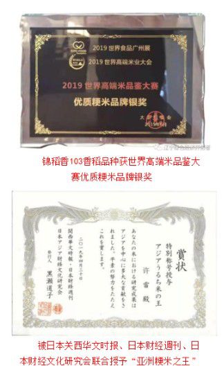 2019年4月被日本关西华文时报、日本财经周刊、日本财经文化研究会联合授予“亚洲粳米之王”称号。